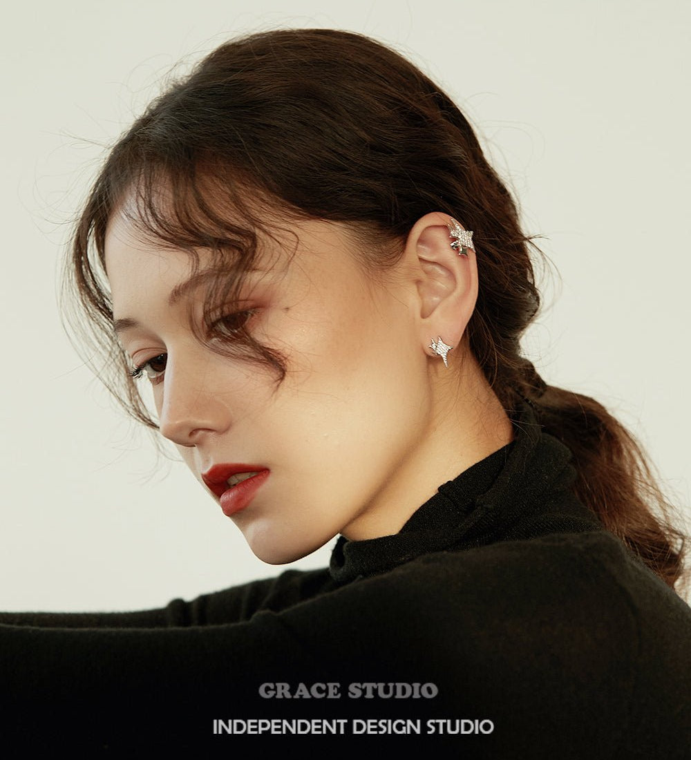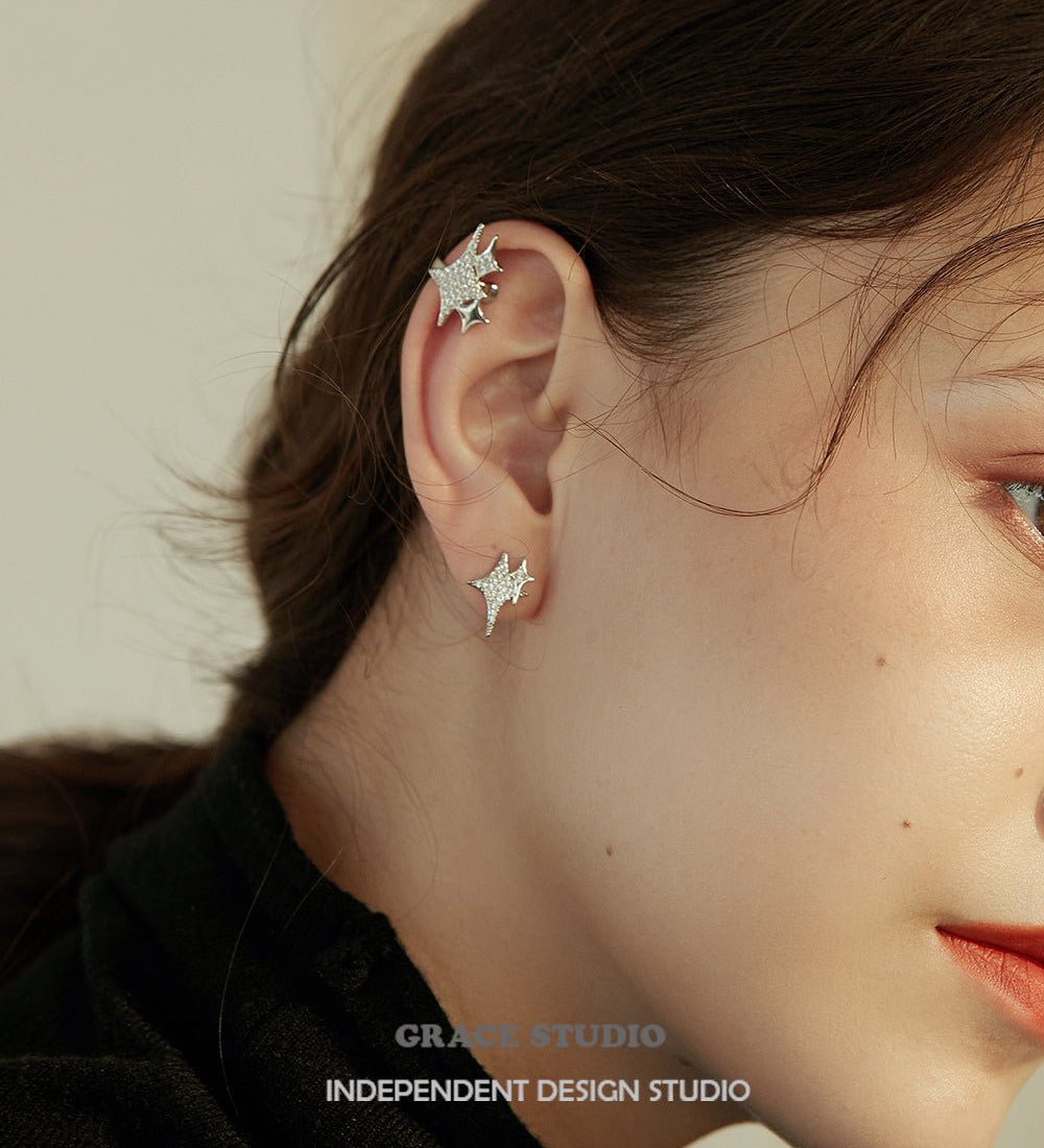 Cubic Zirconia Layered Star Stud and Cuff Earrings