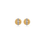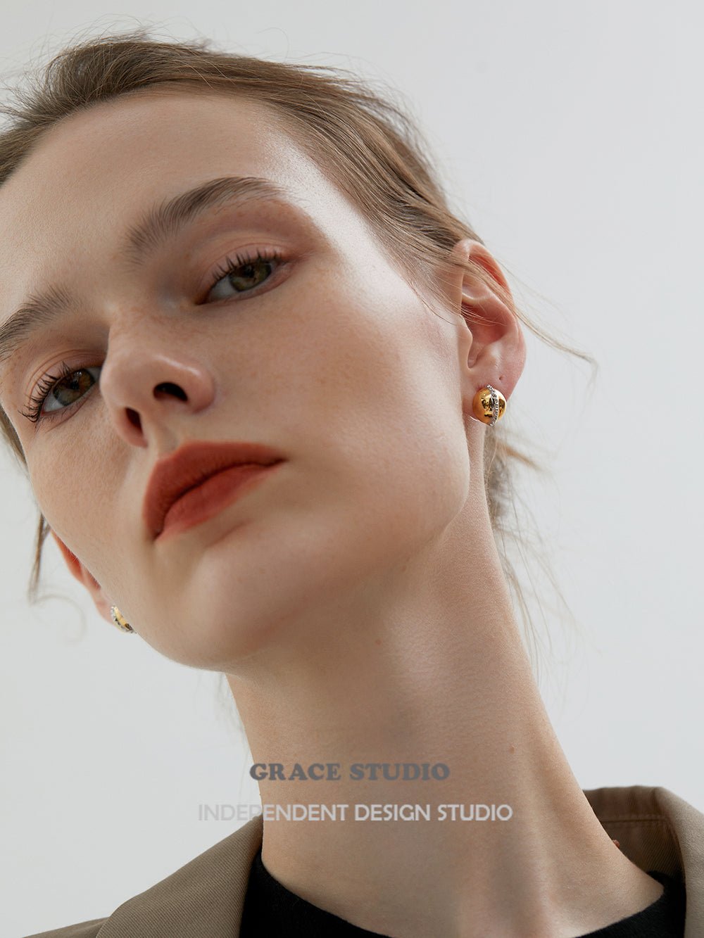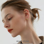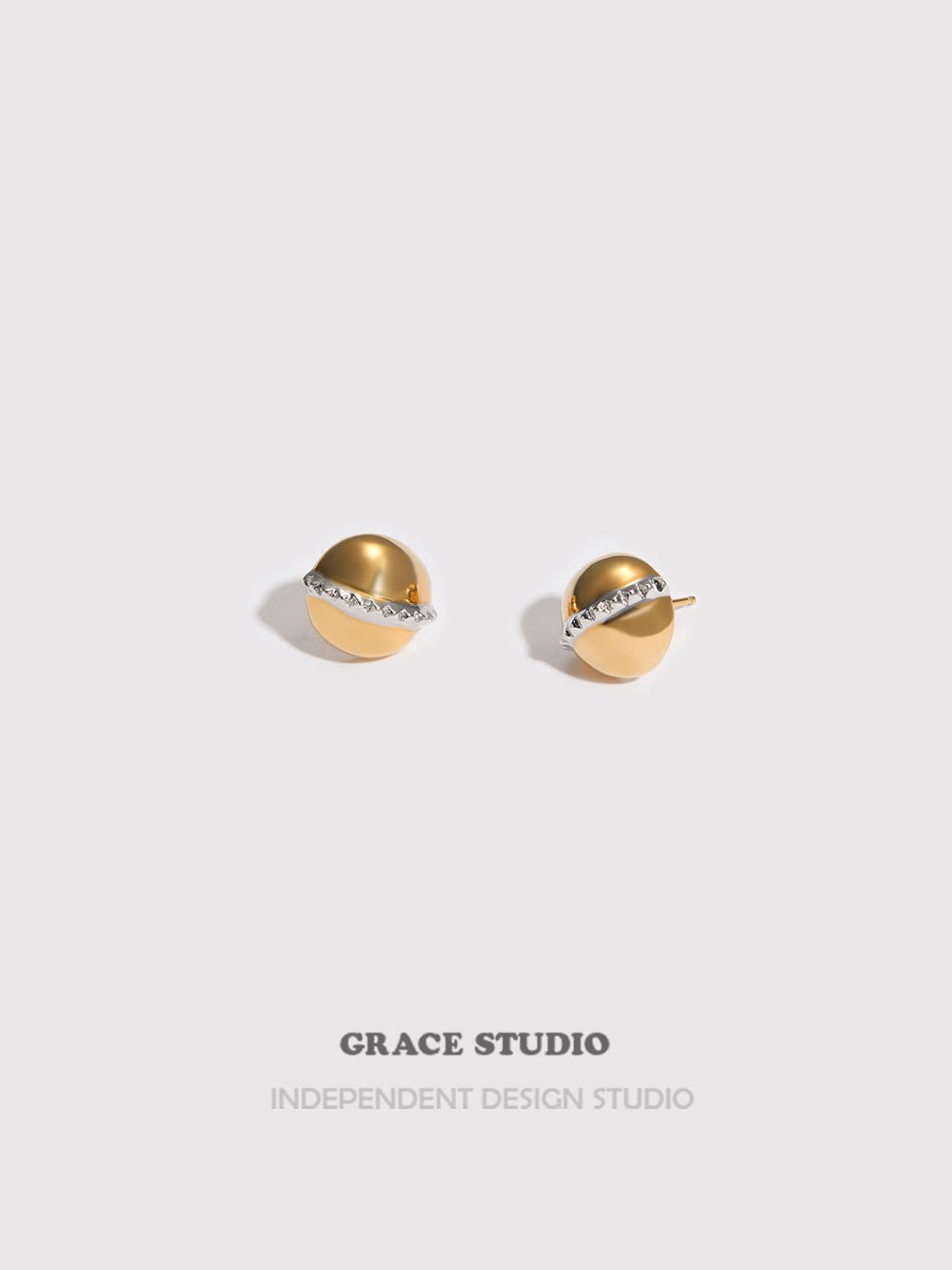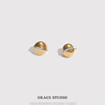 Sleek and sculptural, the Orbit Dome Stud Earrings are a statement in minimalist geometry. Featuring a polished dome silhouette, each earring is accented with a precise arc of clear zircon stones, evoking the elegance of planetary rings. The contrasting gold and silver tones bring a modern duality, while the compact size makes them a versatile staple for everyday wear or subtle evening sparkle.