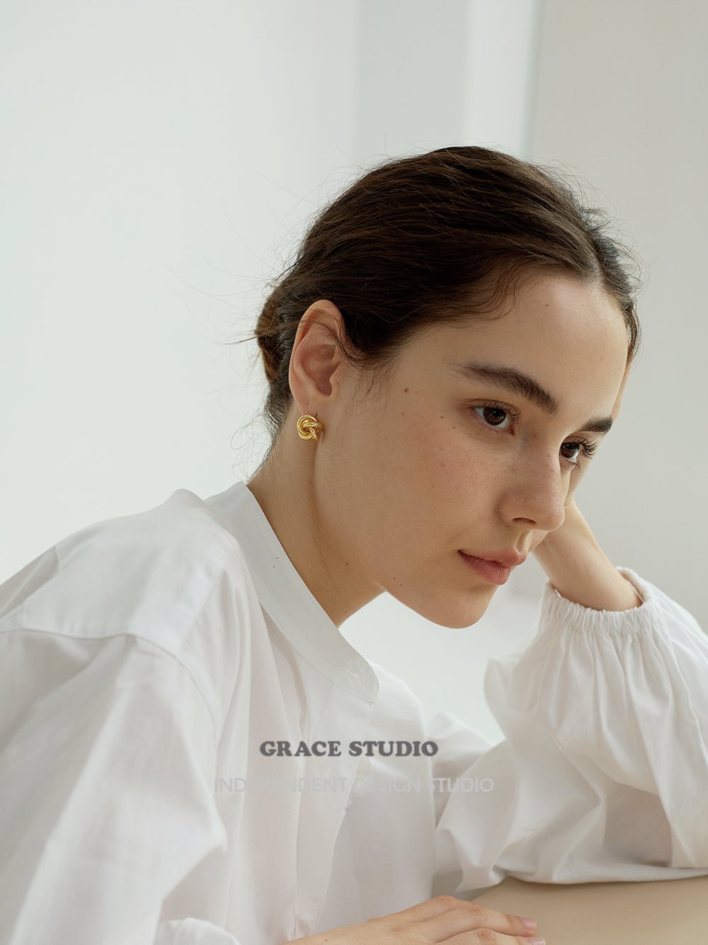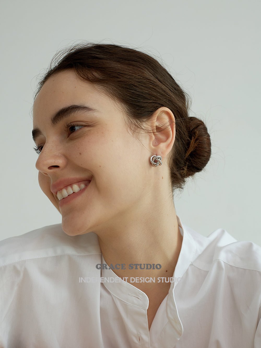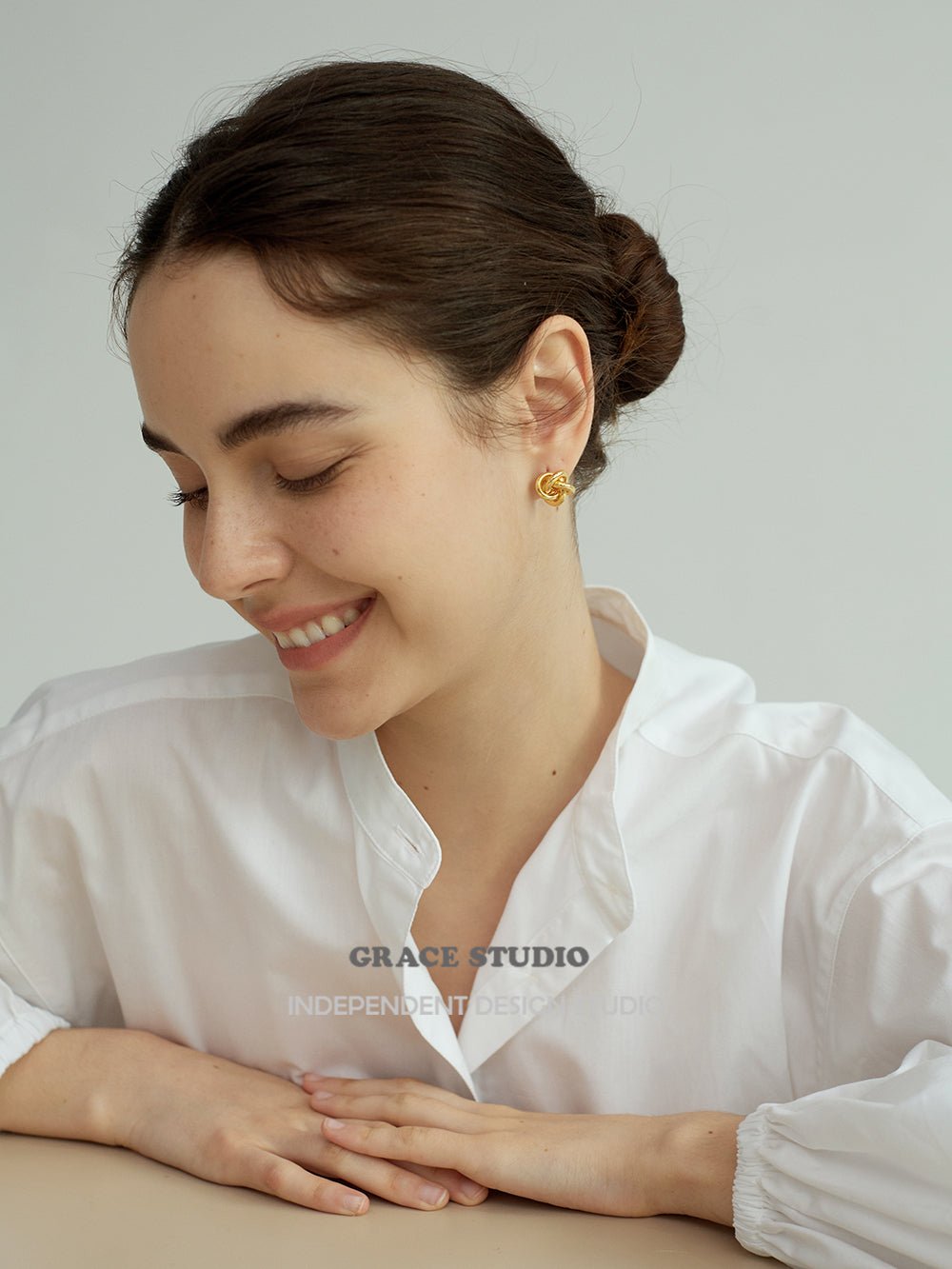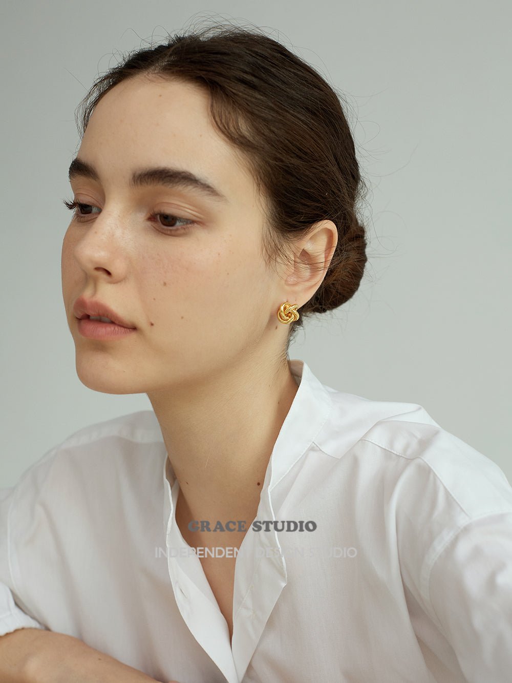 These Interwoven Knot Stud Earrings are a timeless addition to any jewelry collection. Featuring a compact yet eye-catching design, they combine classic elegance with everyday wearability. Each earring is shaped into a delicate knot, symbolizing connection and unity, perfect for gifting or adding a refined detail to your own look. Made from eco-friendly brass with 925 sterling silver posts, they are available in both gold and silver tones to suit your personal style.