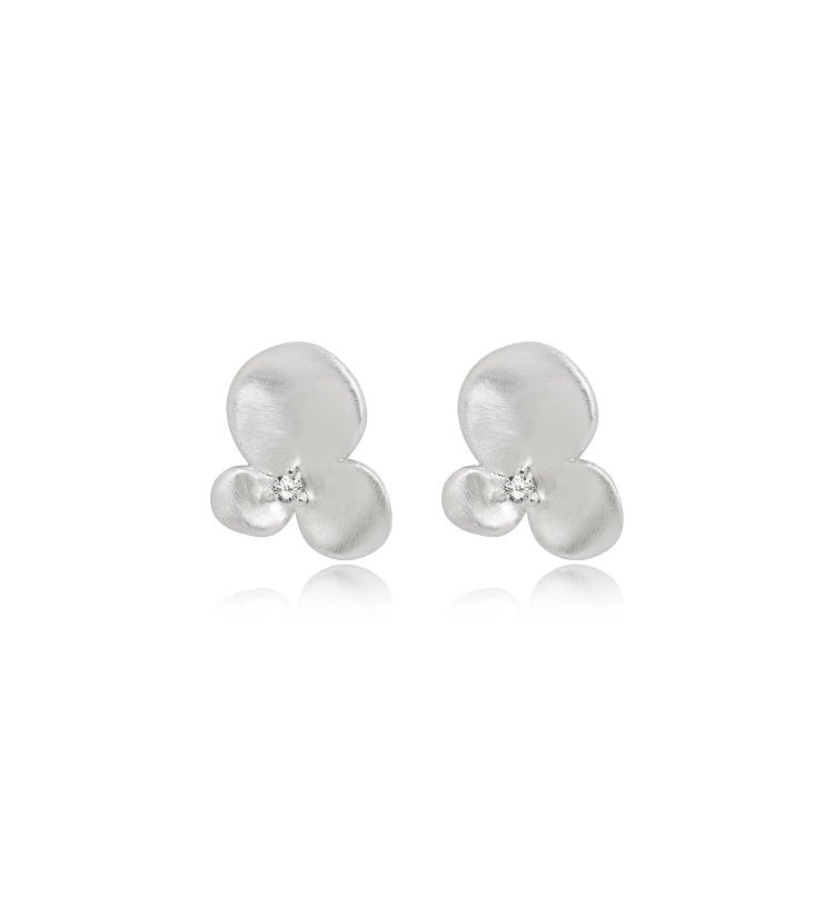 Elegant Matte Trefoil Zirconia Stud Earrings