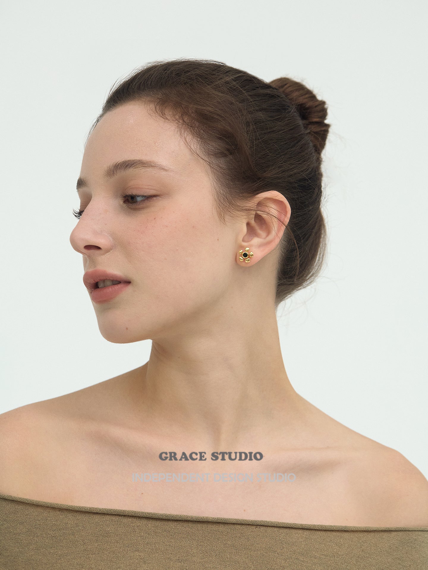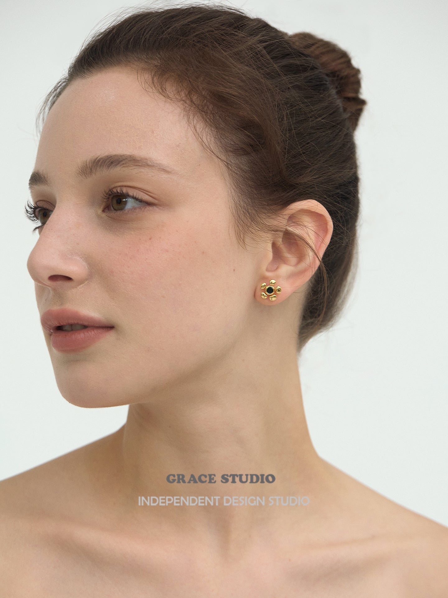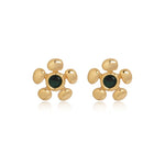 A charming bloom of elegance and whimsy, these delicate flower gem stud earrings feature a central semi-natural green stone encircled by smooth, petal-like gold orbs, creating a petite floral motif that adds a touch of nature-inspired sparkle to your ear. Lightweight and secure with hypoallergenic posts, they're ideal for everyday wear or gifting, blending minimalist design with a subtle pop of color for versatile styling from casual days to special occasions.
