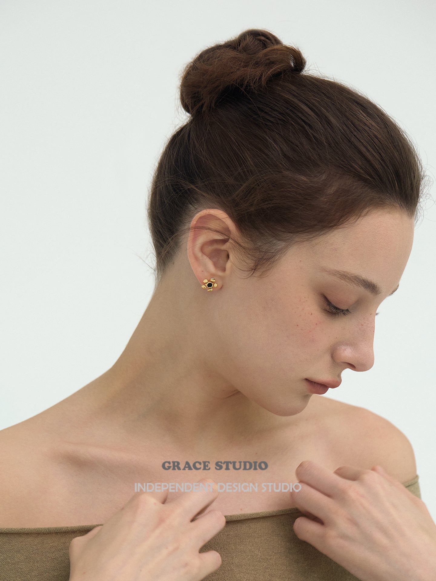 • Material: Copper plated 18K gold accessories / Semi-natural stone / 925 silver post