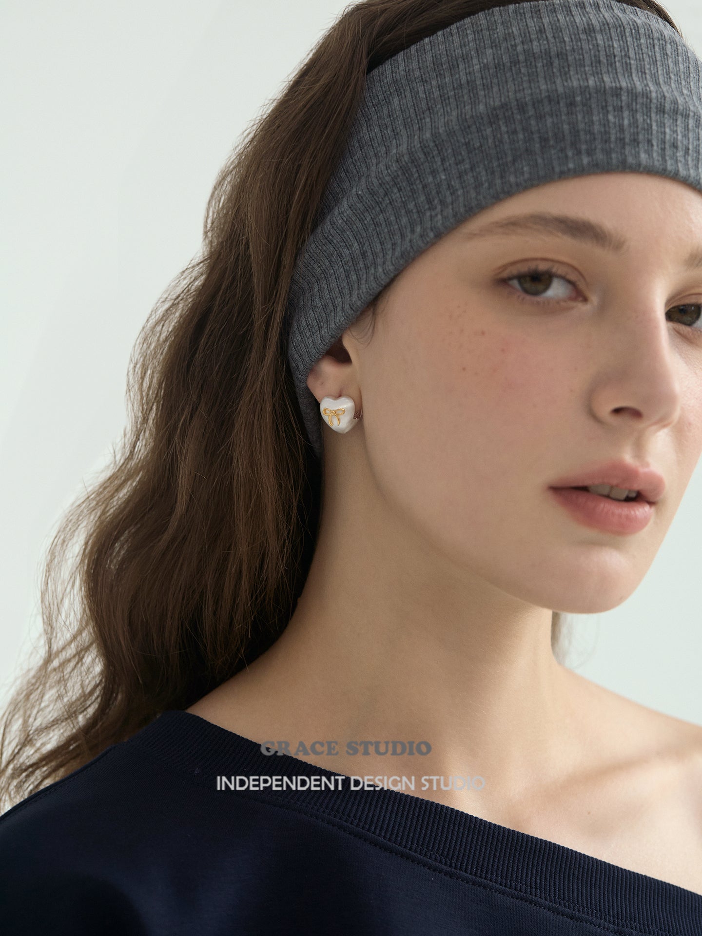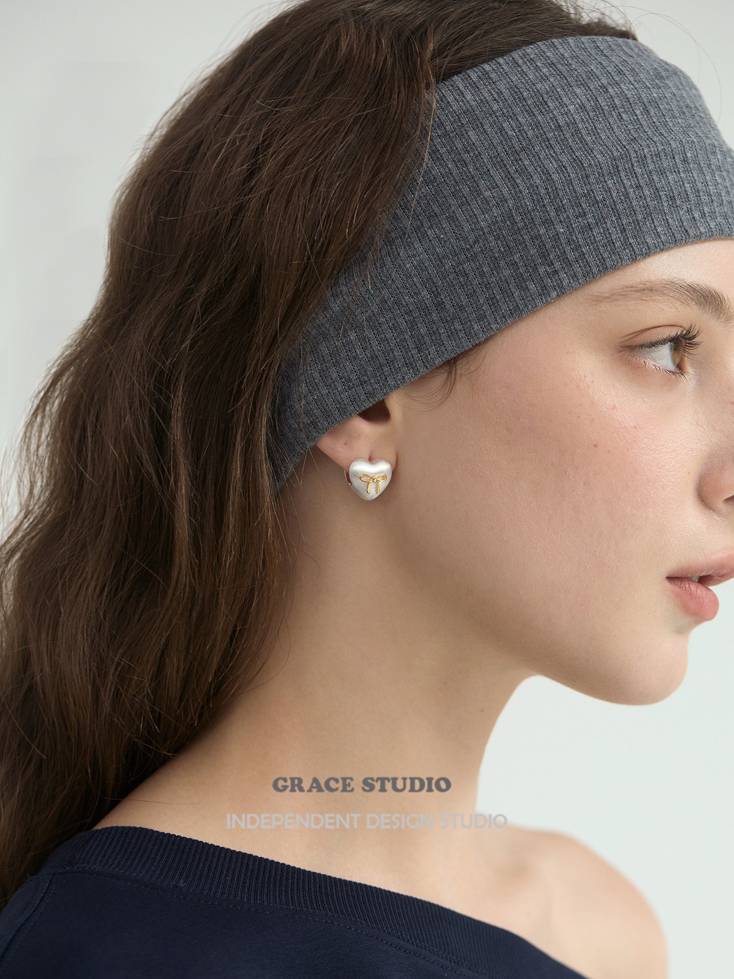 Whimsical Matte Heart Bow Stud Earrings