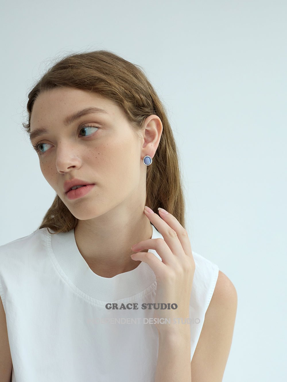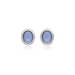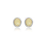 A perfectly minimalist everyday essential. These dainty 11mm round cabochon stud earrings feature genuine semi-precious stones, soft sky-blue lace agate and creamy lemon jade, each carefully bezel-set in polished 925 sterling silver with 18K white gold vermeil.