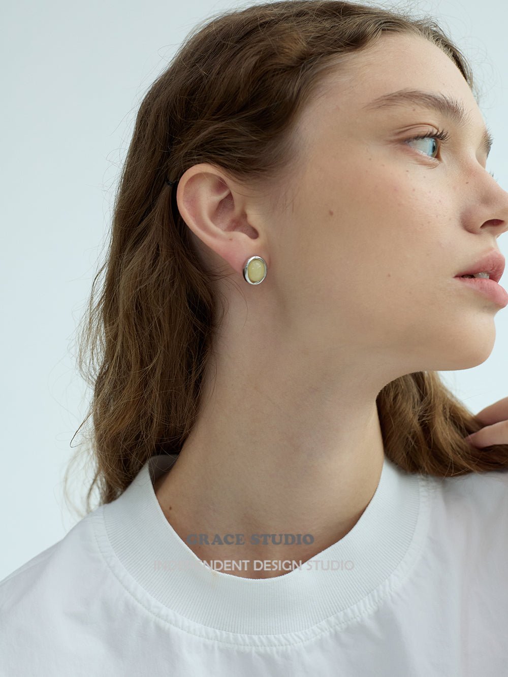 Minimalist Round Cabochon Stud Earrings
