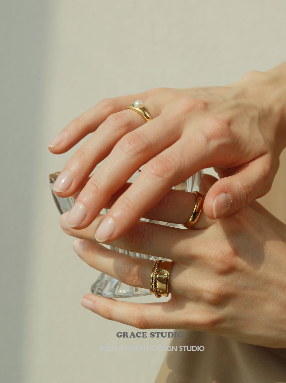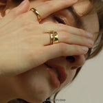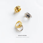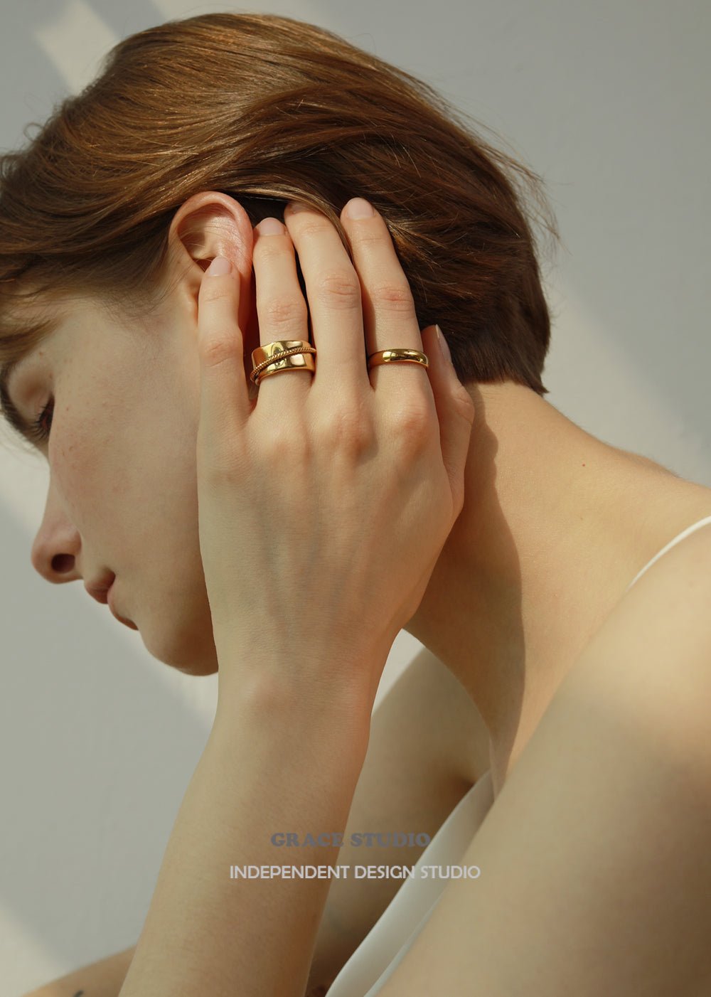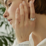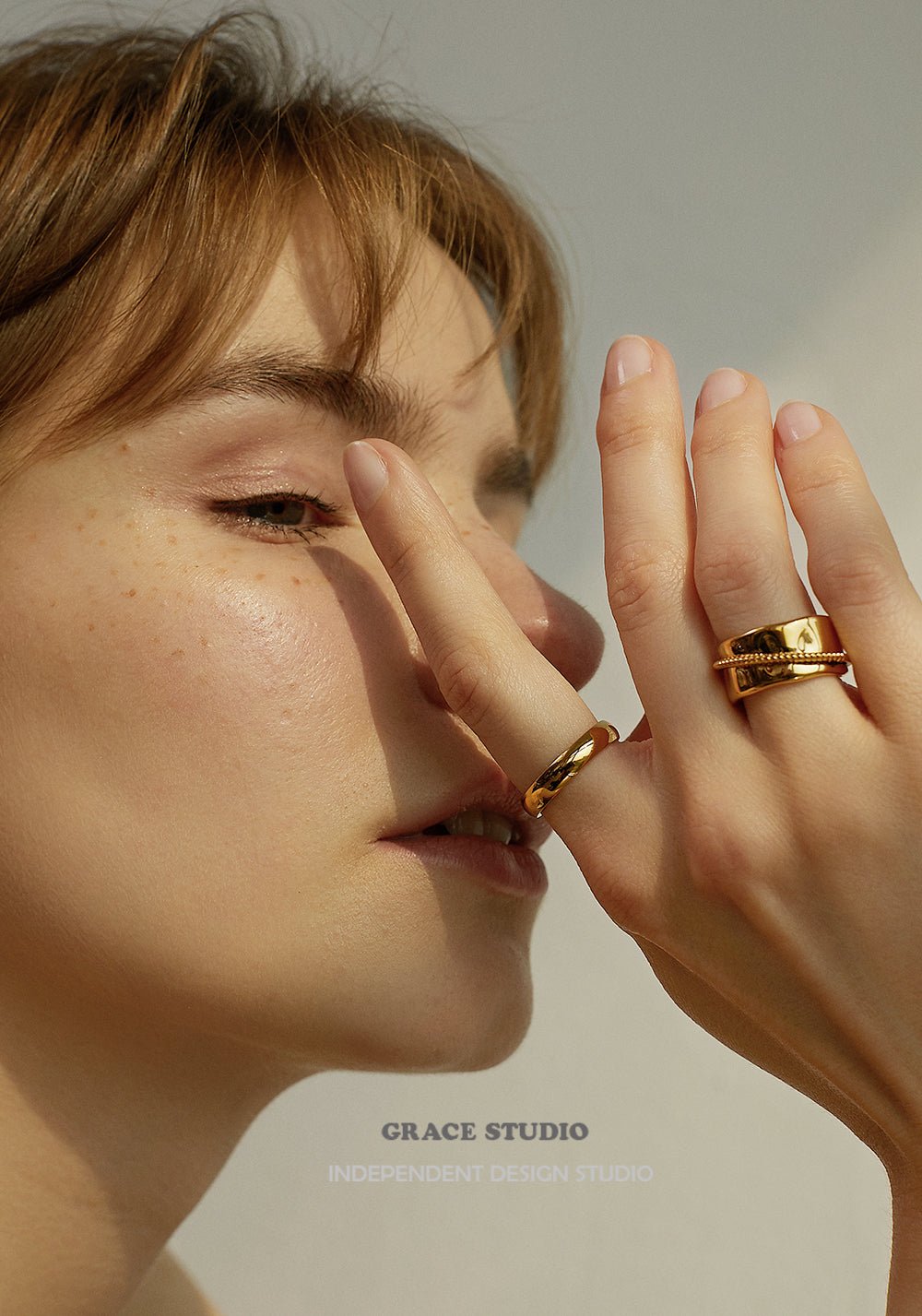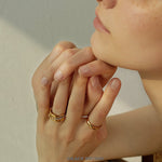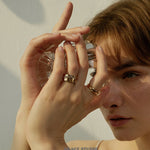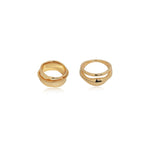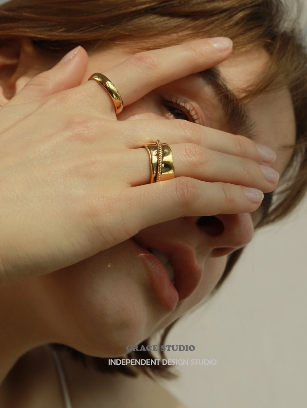 This silver / gold ring duo strikes the perfect balance between structure and subtle detail. The wide band ring features a soft, rounded profile accentuated by delicate rope trim, adding texture without overpowering. The second design showcases a sculptural, double-layer silhouette with smooth, intersecting curves that wrap fluidly around the finger. Whether worn stacked or individually, these rings bring a modern, refined touch to everyday styling.