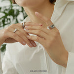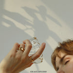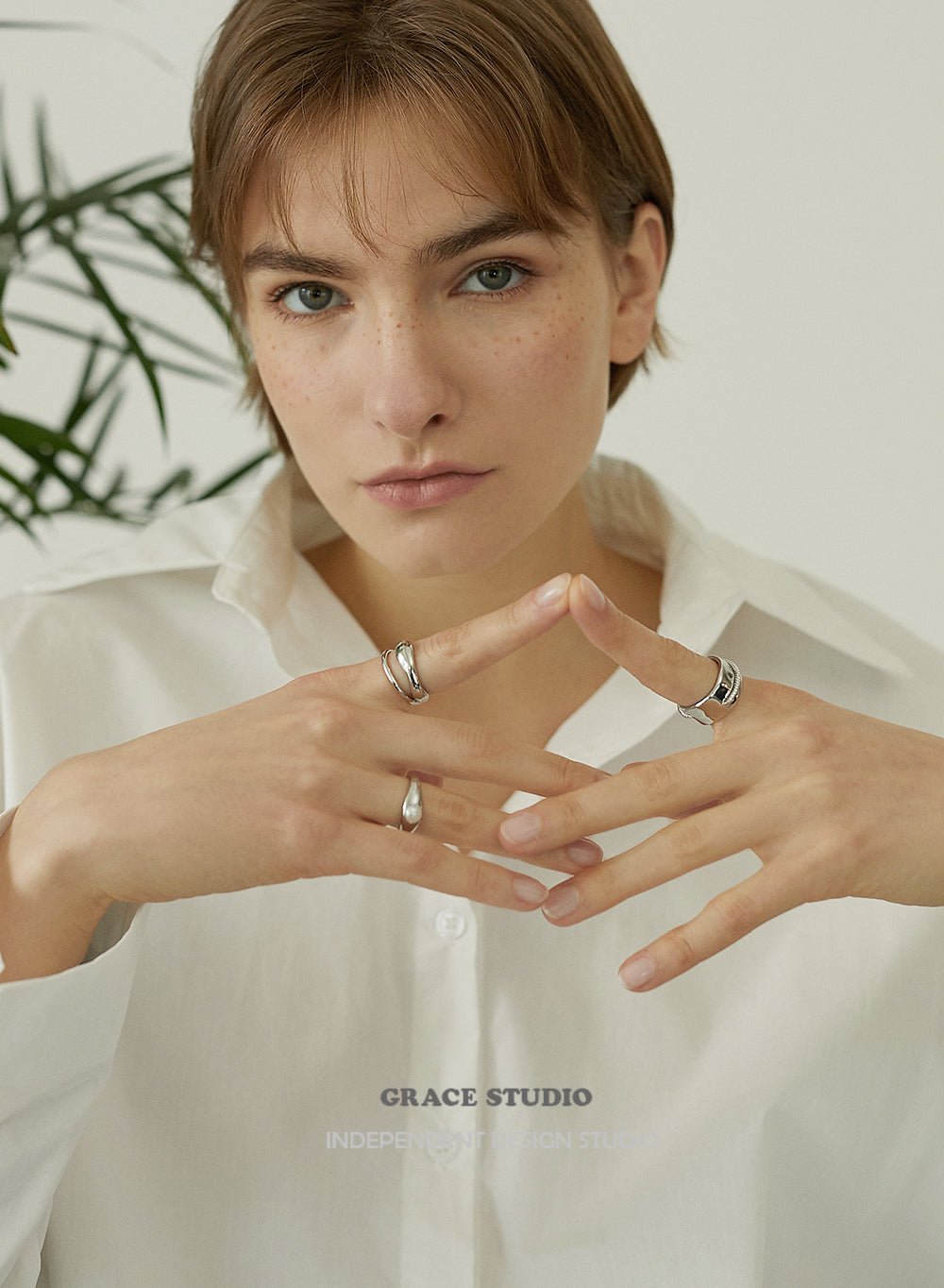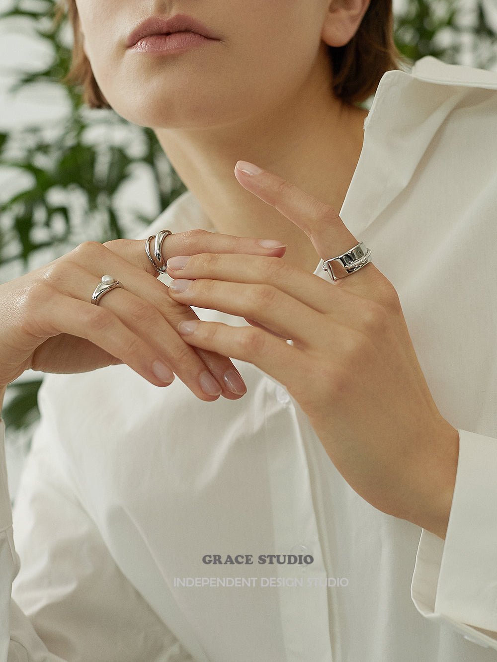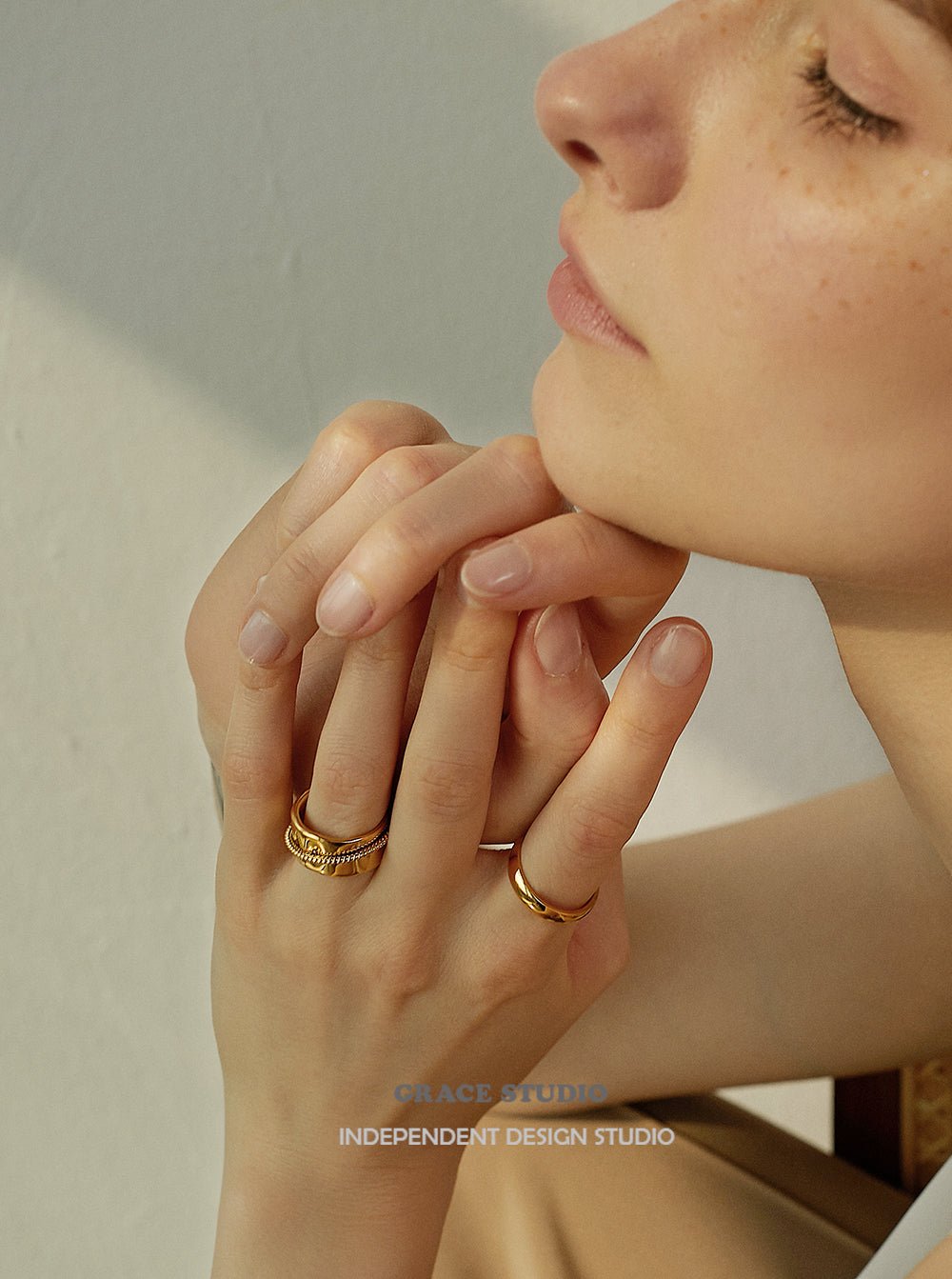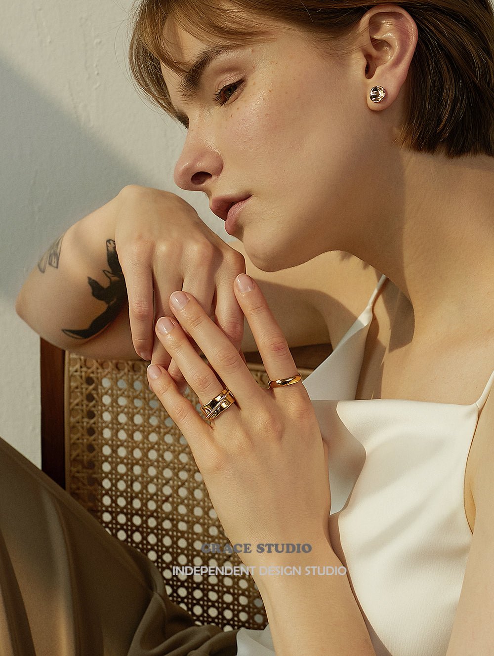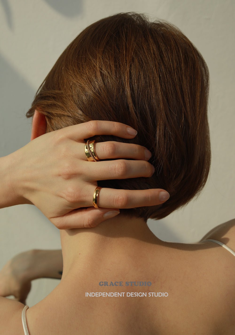 This silver / gold ring duo strikes the perfect balance between structure and subtle detail. The wide band ring features a soft, rounded profile accentuated by delicate rope trim, adding texture without overpowering. The second design showcases a sculptural, double-layer silhouette with smooth, intersecting curves that wrap fluidly around the finger. Whether worn stacked or individually, these rings bring a modern, refined touch to everyday styling.