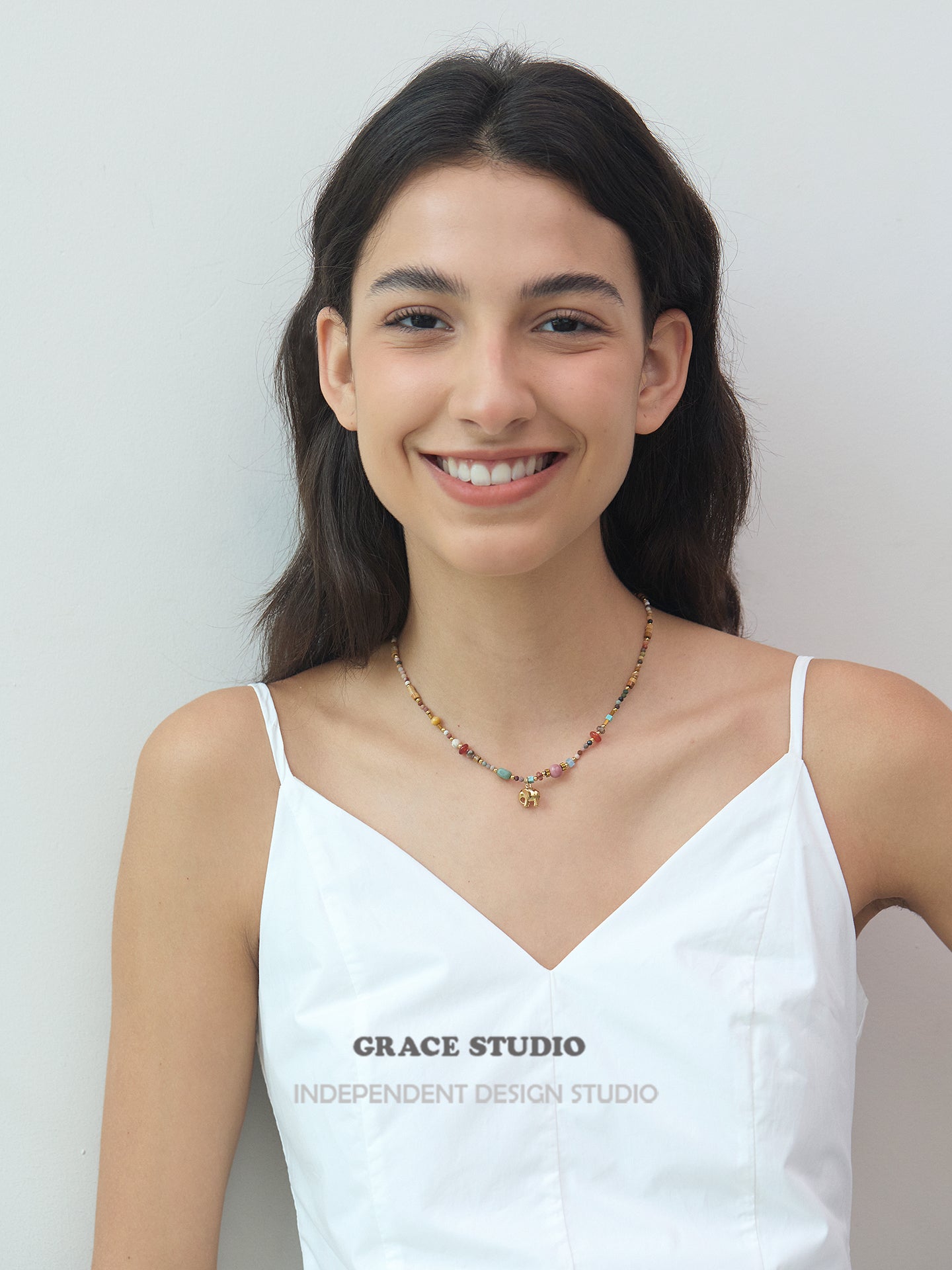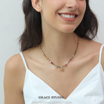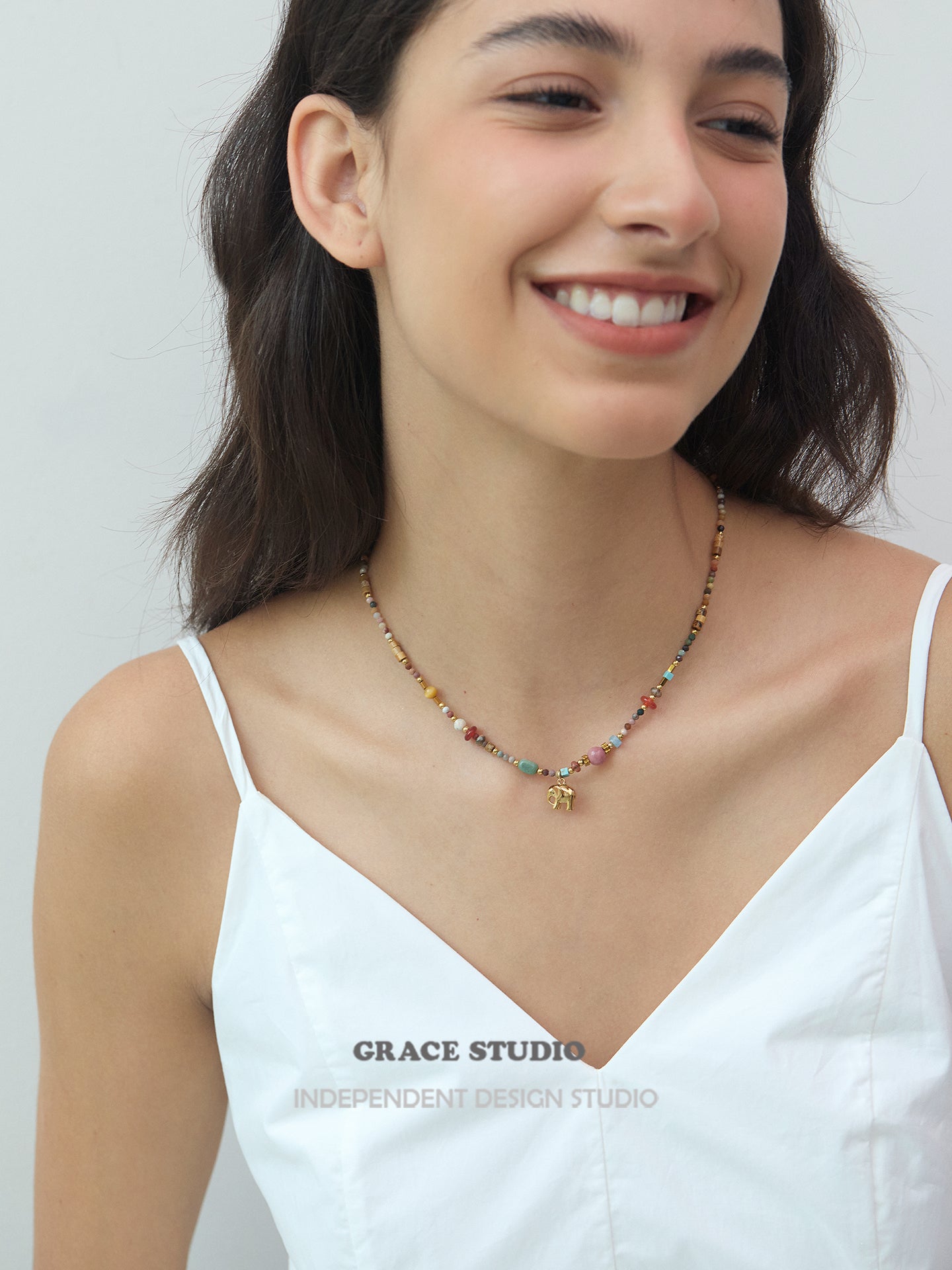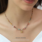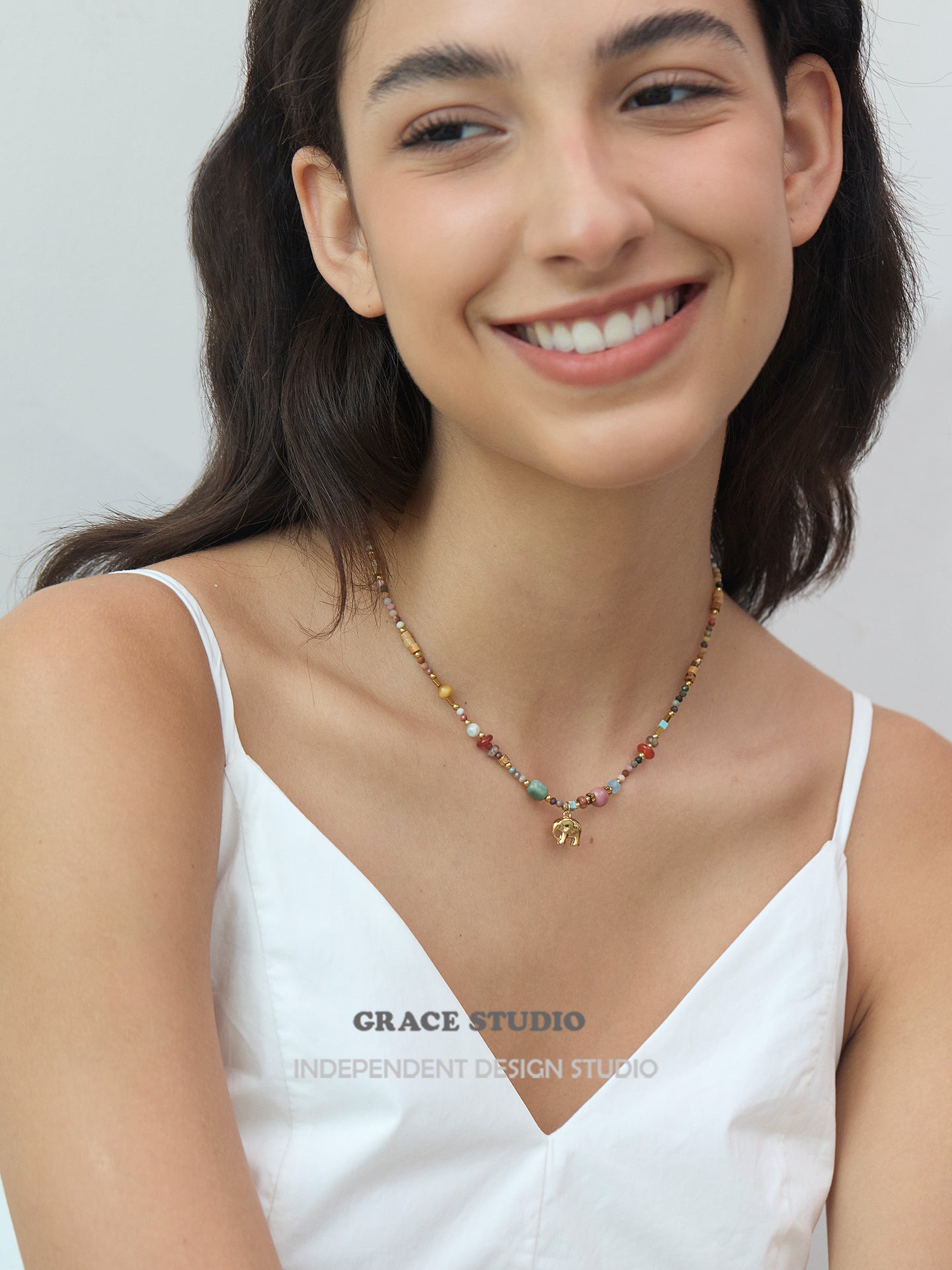 A bohemian delight bursting with earthy vibes, this multi-bead elephant pendant necklace showcases a vibrant array of semi-natural stones and soft clay beads in a harmonious mix of colors, accented by a charming gold elephant charm that symbolizes strength and good fortune. With its adjustable design and textured layers, it's crafted for effortless layering or solo wear, bringing a free-spirited touch to casual outfits or festival ensembles.